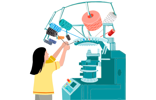 3.Loading Yarn onto State-of-the-Art Machines.